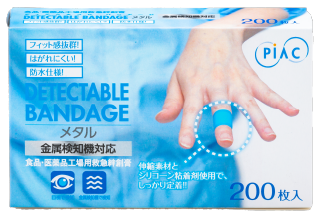 目視に加え、金属検知機に対応した絆創膏。食品加工工場など高度な現場にご利用いただけます 。